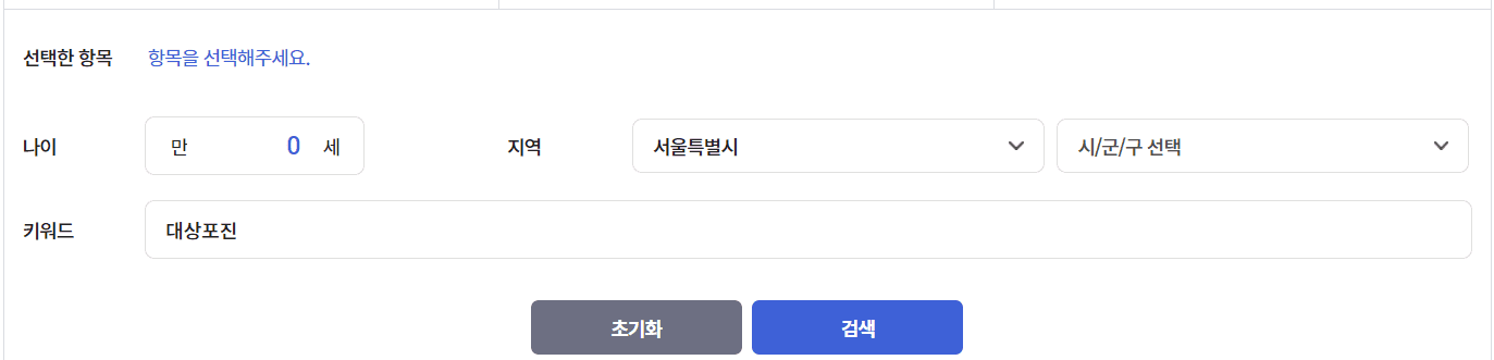 위에 버튼을 클릭하시면 아래 사진과 같은 사이트로 바로가기됩니다. '거주 지역'을 선택합니다. 키워드 항목에 '대상포진' 입력 후 검색을 클릭합니다.