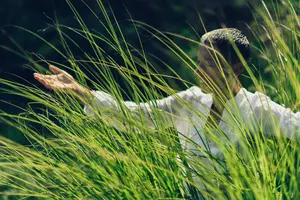 2. 눈을 감고 몸 전체를 이완시킵니다.