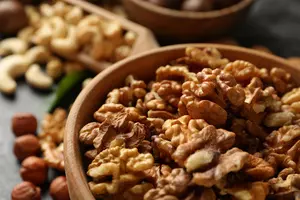 호두에는 오메가-3 지방산이 풍부하여 염증 매개체 생성을 감소시키고 항염증 효과를 가지고 있어 염증 반응을 줄이는 데 도움이 됩니다. 또한 섬유질이 풍부하여 포만감을 오래 유지시켜 과식 방지와 체중 조절에 도움이 될 수 있습니다.
