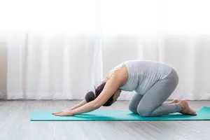 바닥에 무릎을 꿇고 발끝을 바닥에 댄다. 척추를 곧게 하고, 어깨를 뒤로 당긴다. 숨을 내쉬면서 왼쪽 무릎을 왼쪽 팔꿈치 쪽으로 천천히 이동시킨다. 왼쪽 팔꿈치는 바닥에 댄 상태로 유지한다. 30초간 유지한 후 천천히 원래 자세로 돌아온다.